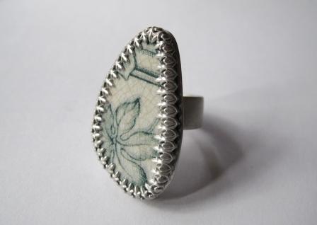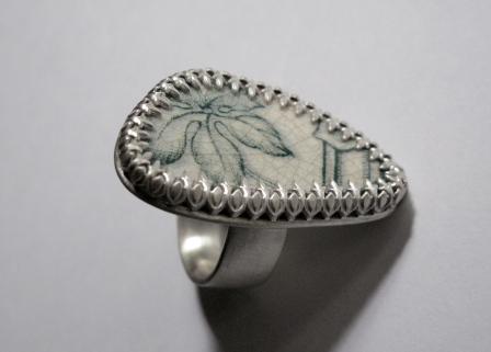 Request: Lachlan's got a piece of ceramic that he picked up at a time when he went diving with her daughter. He wanted G to use the piece of ceramic as the surface of the ring and make a sterling silver ring for her daughter. It is the present for his daughter's graduation.